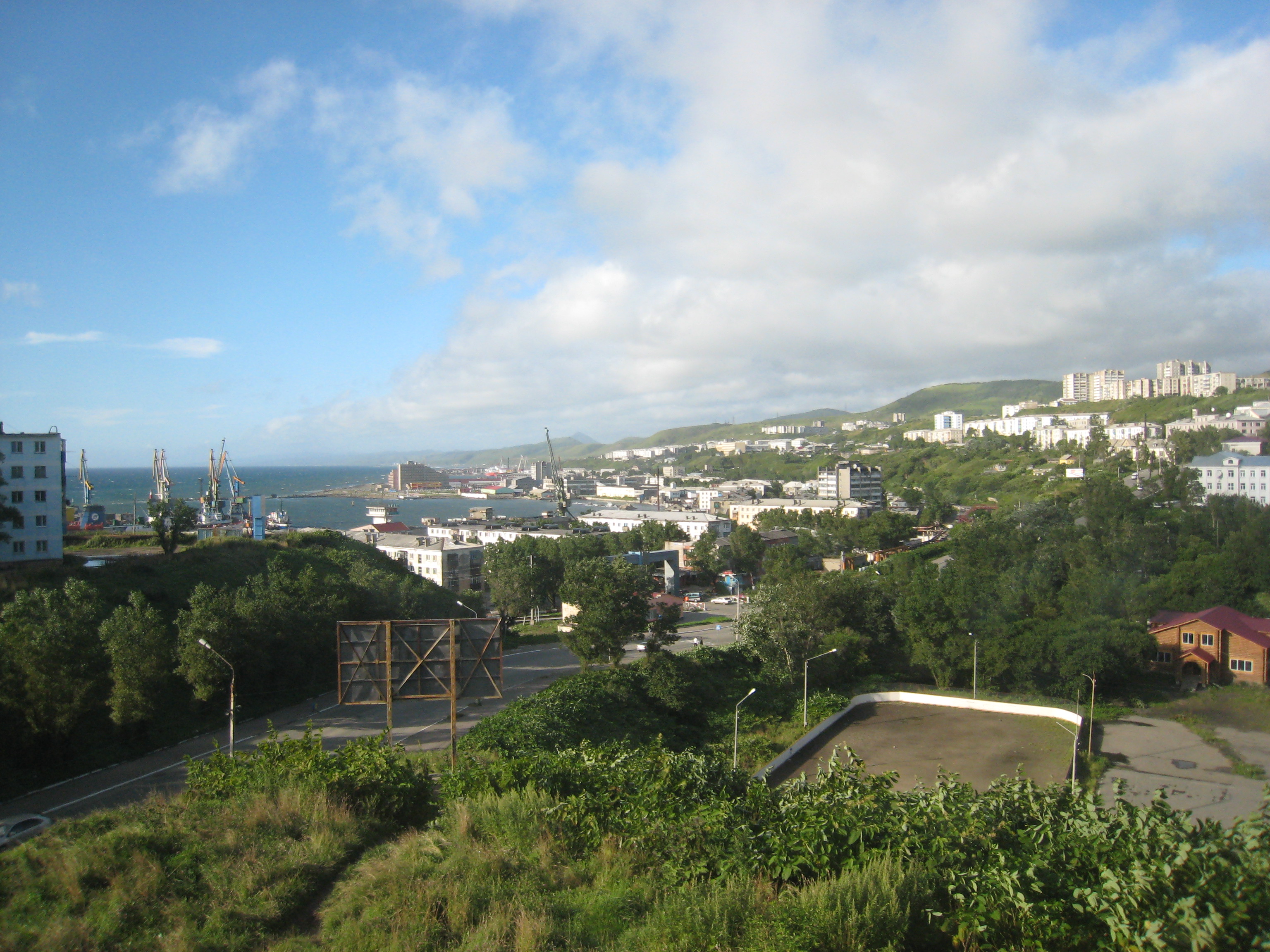 写真はホルムスクのホテル「チャイカ」から見た町並みです。